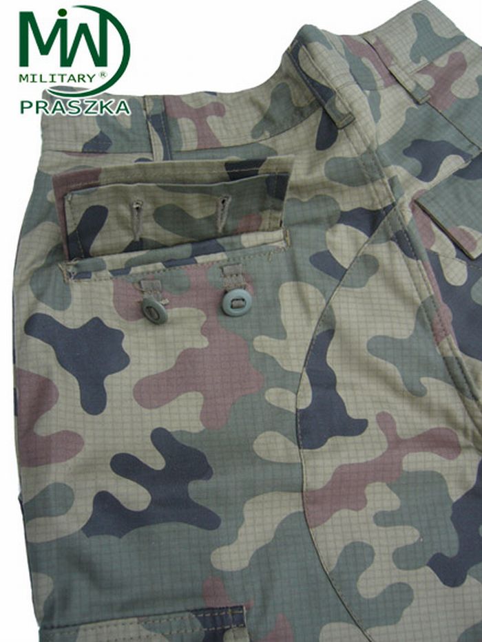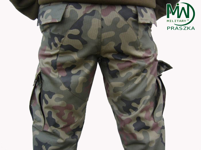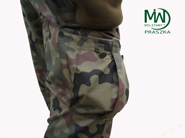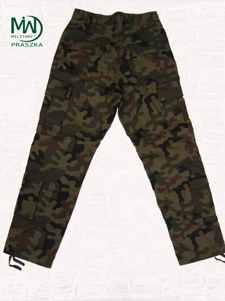 Spodnie UP (ubiór polowy) wykonane są z tkaniny typu rip-stop czołowego polskiego producenta, pokrytej nadrukiem kamuflażu wz.93 PANTERA (leśna). Tkanina US-21 (letnia) o wysokich właściwościach wytrzymałościowych, lekka i przewiewna, bardzo szybko schnie po zamoczeniu. Krój spodni wzorowany na amerykańskich spodniach M-65. Spodnie posiadają osiem kieszeni. Dwie kieszenie przednie wewnętrzne. Dwie znajdujące się na pośladkach kieszenie wewnętrzne, zamykane na guziki kanadyjskie z klapką Dwie duże, zewnętrzne kieszenie na udach. Kieszenie te zapinane są klapami na guziki typu kanadyjskiego. Dodatkowo kieszenie te są tak skonstruowane, że po zamknięciu klapy wydłużona część kieszeni zawija się pod klapę uszczelniając kieszeń. Rozwiązanie to zapobiega wypadaniu przedmiotów z kieszeni jak i dostawaniu się do kieszeni zanieczyszczeń. Na łydkach znajdują się dwie najmniejsze kieszonki przeznaczone na opatrunki osobiste. Kieszonki te zamykane są klapą zapinaną na taśmę velctro. Spodnie zapinane są na guziki kanadyjskie. W pasie znajduje się siedem szlufek na pasek. Dodatkowo w przypadku utraty paska spodnie posiadają wewnętrzną taśmę ściągającą. Spodnie posiadają też wzmocnienia w miejscach najbardziej narażonych na przetarcie tj. na pośladkach oraz kolanach. Wzmocnienia na kolanach posiadają taką konstrukcje, która umożliwia umieszczanie w nich wkładek ochronnych lub zwykłej pianki. W miejscach narażonych na rozdarcie szwów zastosowano wzmocnienia w postaci rygli.