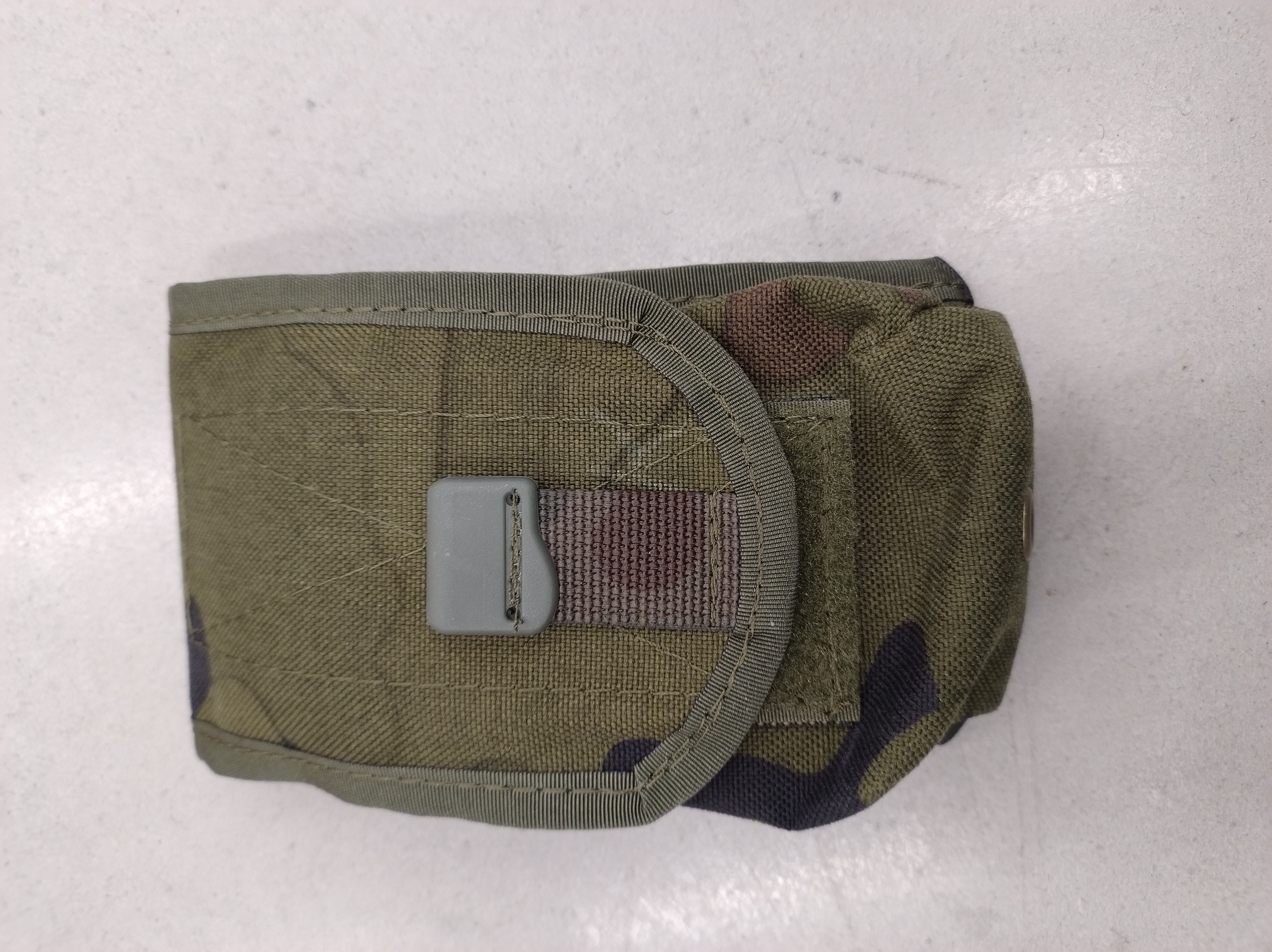 Kieszeń na pojedynczy granat dymny, sygnalizacyjny np: M-18. Zapewnia pewne i bezpieczne przenoszenie granatu, a dzięki zapinanej na rzepem. W wariancie klapy zapinanej na rzep na jej końcu wszyty jest odcinek taśmy zakończony elastomerową końcówką. Rozwiązanie to ułatwia otwarcie kieszonki nawet w grubych rękawicach. System montażu kieszonki oparty na przeplatanych taśmach, co umożliwia mocowanie jej do kamizelek, paneli udowych, pasów oraz innych elementów wyposażenia.