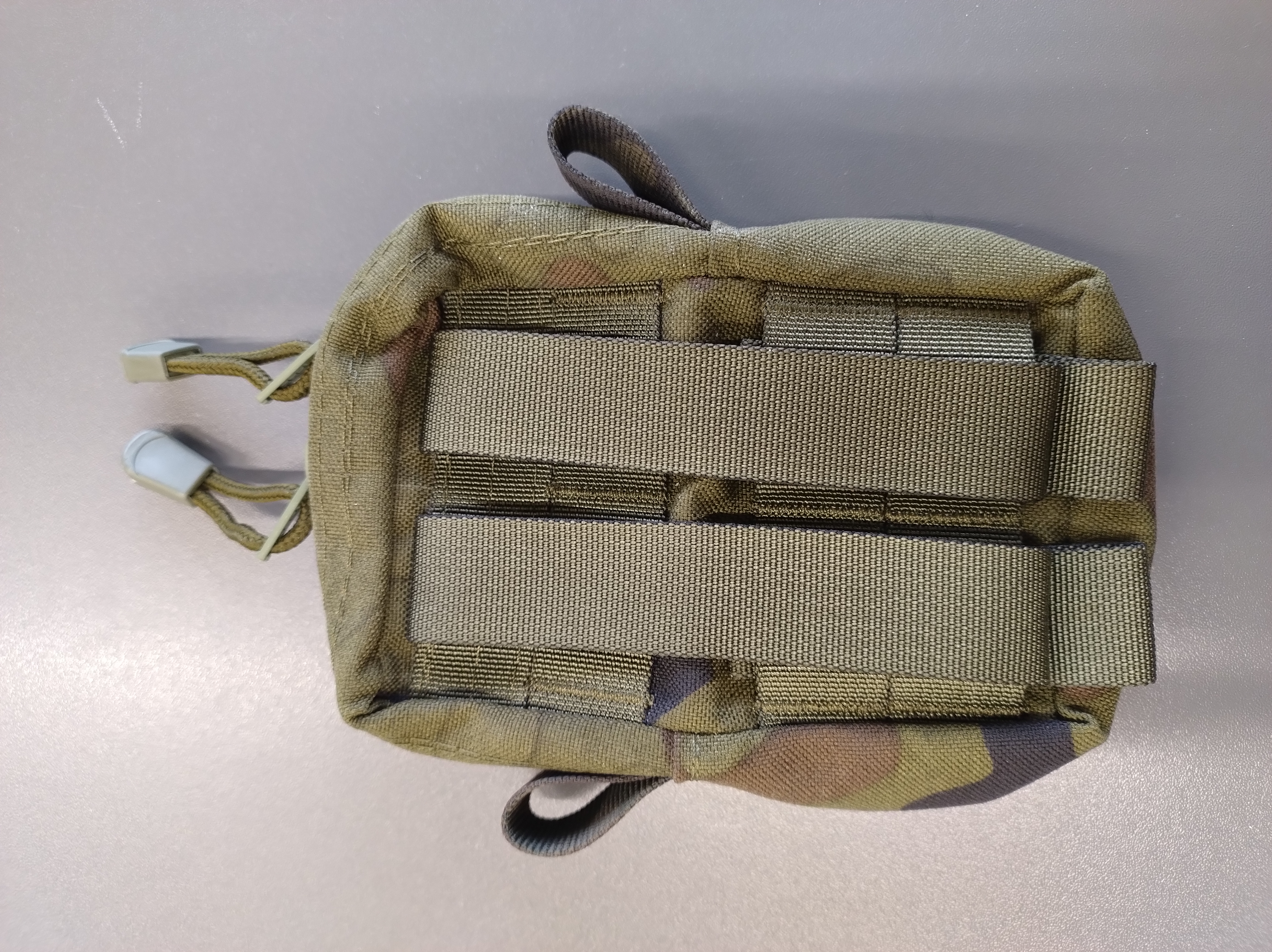System mocowania kieszeni oparty jest na przeplatanych taśmach, co zapewnia pewne i stabilne jej mocowanie na kamizelkach taktycznych, pasach, panelach udowych oraz innych elementach wyposażenia.
