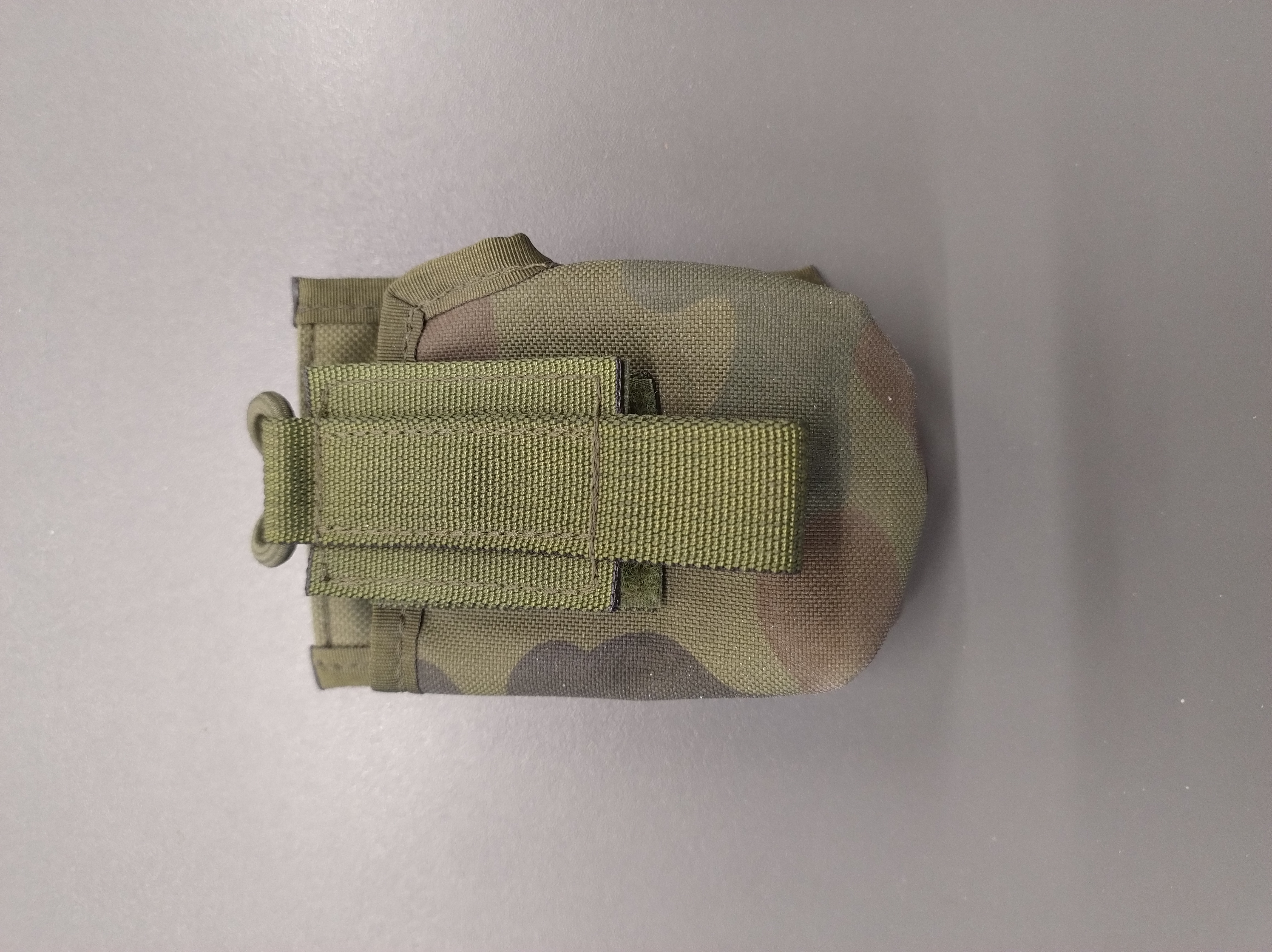 System mocowania kieszeni oparty jest na przeplatanych taśmach, co zapewnia pewne i stabilne mocowanie na kamizelkach taktycznych, pasach, panelach udowych oraz innych elementach wyposażenia.